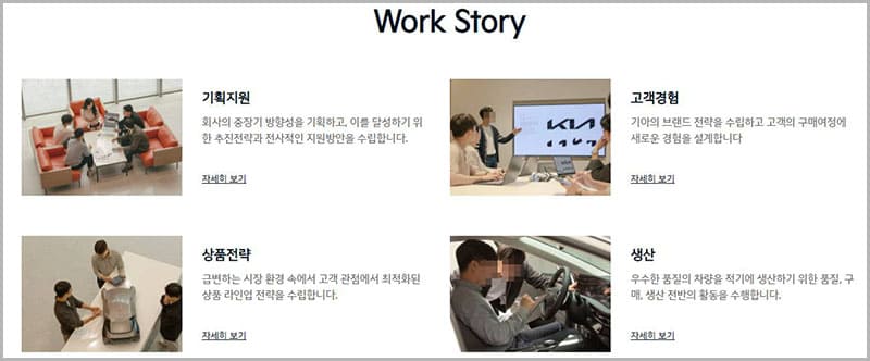 기아자동차는 다양한 직무를 통해 지원자들의 폭넓은 기회를 제공하며, 각 직무별 특징 및 자세한 안내를 하고 있습니다. 기획지원, 고객경험, 상품전략, 생산, 신사업전략 등 다양한 직무에 대해 자세히 알아보고 적성에 맞는 직무를 선택하시기 바랍니다.