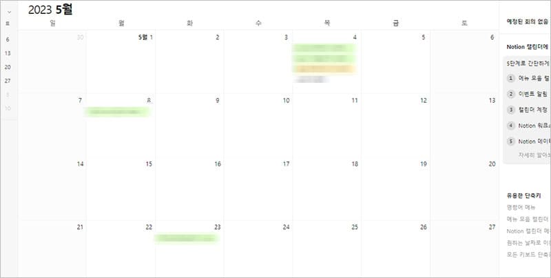 일정을 확인해 보니, 노션 캘린더에 구글 계정의 캘린더가 잘 연동된 것을 확인할 수 있습니다. 이 둘의 연동은 생각보다 간단한 과정인데요. 많은 분들이 어렵지 않게 할 수 있을 거라 생각합니다.