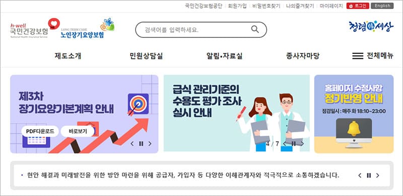노인장기요양보험 홈페이지에 대해서 알아보겠습니다. 노인장기요양보험은 국민건강보험공단에서 추진하고 있으며, 고령자 및 노인에게 필요한 장기 요양 서비스를 제공하기 위한 사회보험 제도입니다. 직장인들이 납부하는 건강보험료 안에 이미 장기요양보험이 포함되어 있으며, 급여 수급을 할 수 있는 나이가 되면 신청을 할 수 있습니다.
