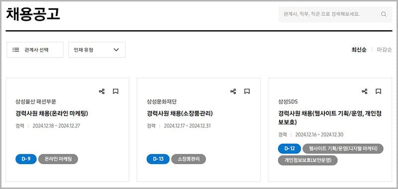 많은 분들이 궁금해하시는 국내 최대의 기업 삼성 채용 홈페이지 공고 및 일정에 대해 알아볼게요. 삼성 채용 홈페이지에서는 삼성그룹 및 관계사의 다양한 채용 정보를 제공하고 있습니다.