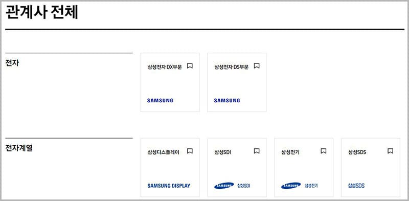 - 전자계열 : 삼성디스플레이, 삼성SDI, 삼성전기, 삼성SDS