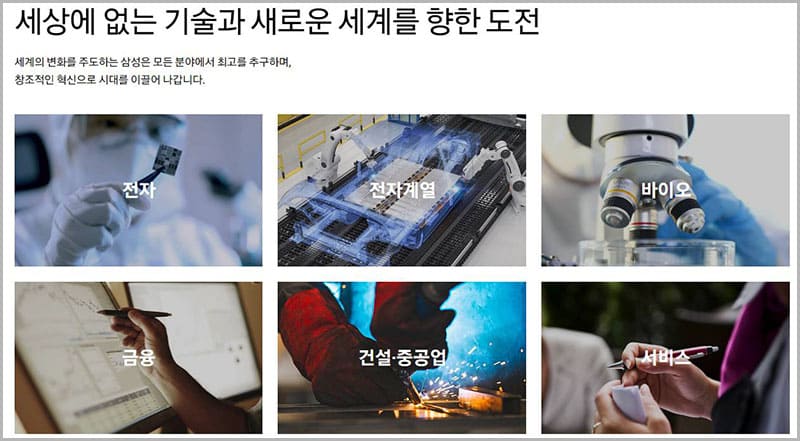- 금융 : 삼성생명, 삼성화재, 삼성카드, 삼성증권, 삼성자산운용