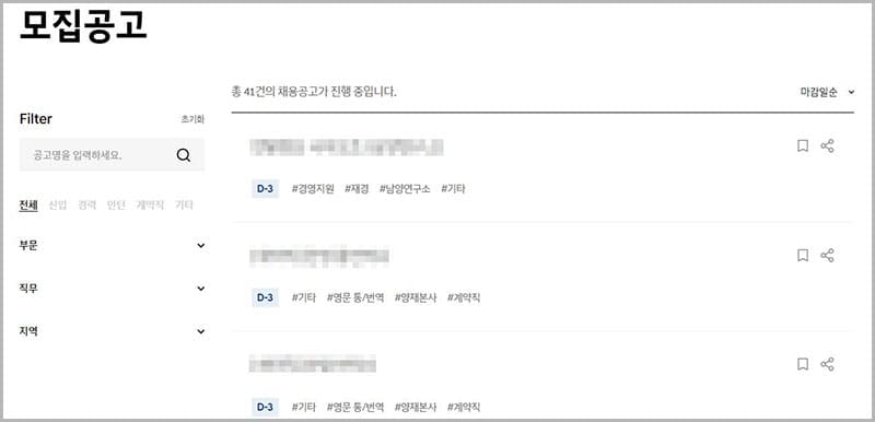 - 경력 채용 : 서류 전형 – 면접 전형/인성 검사 – 채용 검진 및 입사